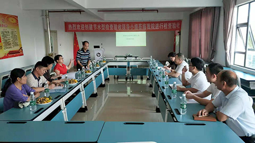 验收领导小组听取了廖明云副院长关于我院“节水型单位”创建工作的情况汇报。随后,验收领导小组一行参观了医院各部门,并查看了创建档案资料,对院内节约用水标识、洁具和节水设施设备的使用进行了实地查看和检查。
